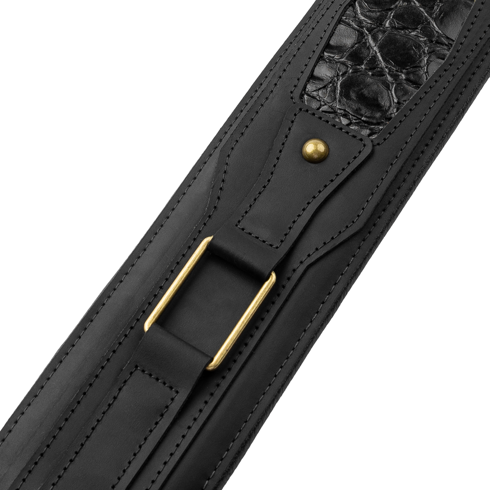 Elevate your performance with the Apex Series, a handcrafted guitar strap designed for the discerning musician who demands both style and substance. Made from durable Crazy Horse leather, this strap combines rugged resilience with a vintage aesthetic that only gets better with age. The embossed leather cut-out adds a bold and distinct look, while antique brass hardware ensures durability and a timeless, classic appeal. Whether you’re playing a short set or rocking out for hours, the Apex Series delivers unmatched comfort and support. Its well-padded design ensures that even during long performances, you’ll stay comfortable and free from strain, making this the ultimate strap for serious players.
