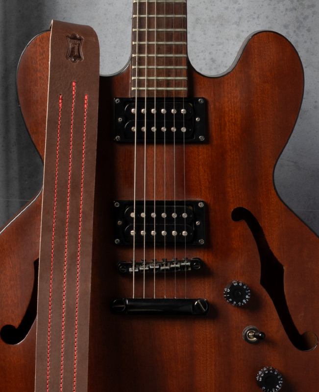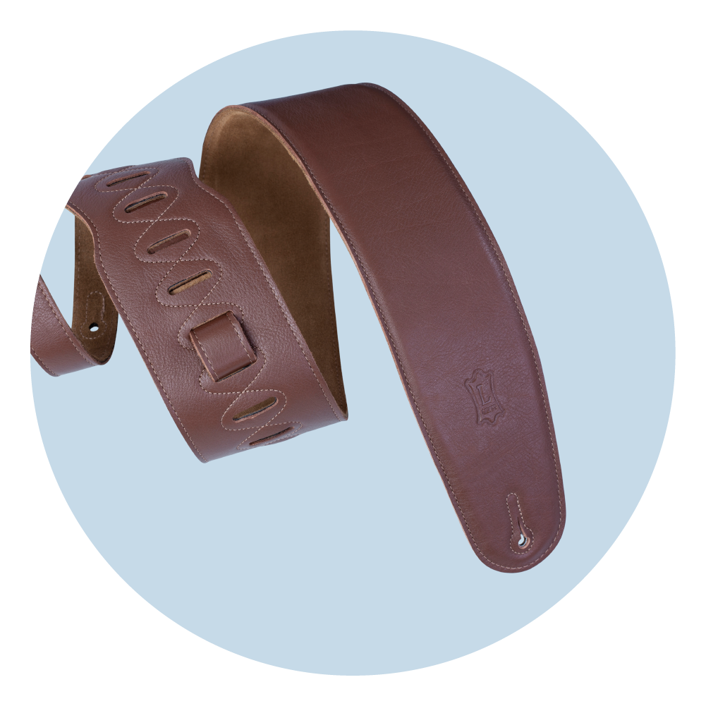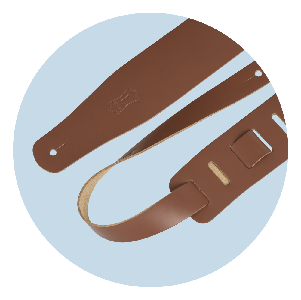• Levy's 1/2" wide dark brown veg-tan leather mandolin strap.