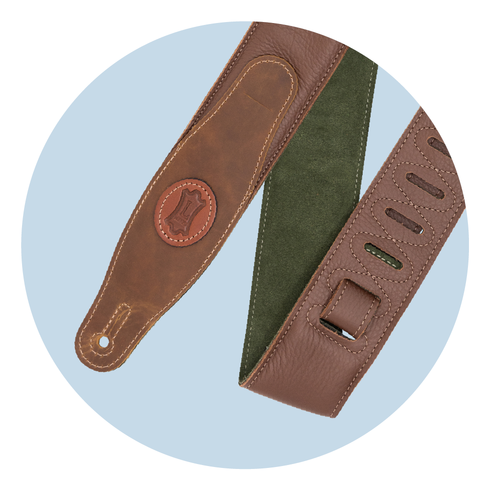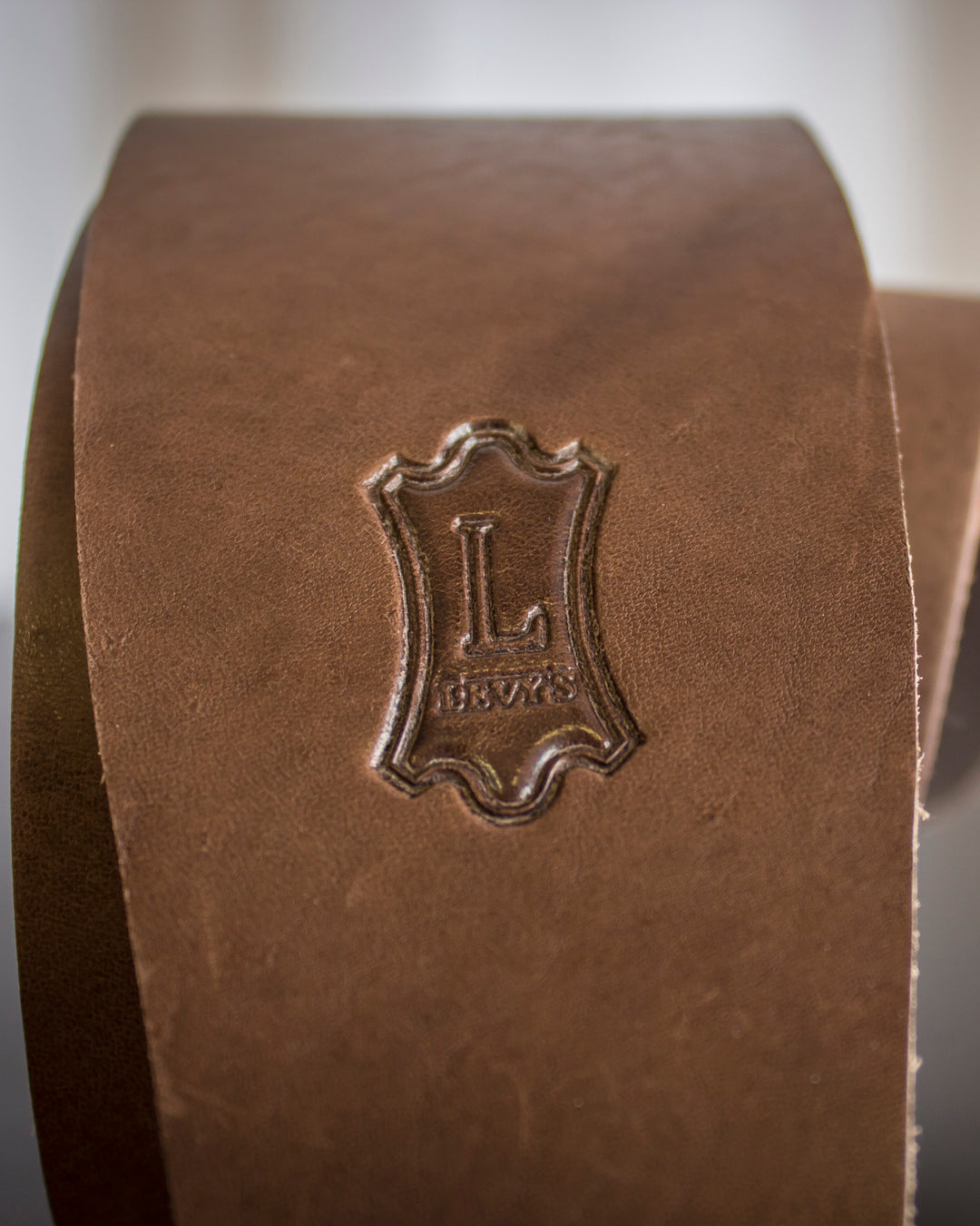 Top-Grain leather breaks down animal hide fibers using chemicals, a 24-hour process. Common for shoe uppers, it's pliable without cracking. Levy's employs it for budget-friendly entry-level straps.